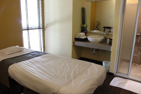 ![]() スパトリートメントルーム。 中央に中庭があり、その周りがトリートメントルームになっています。 シングルベッドルームと、ツインベッドルームがあります。 |