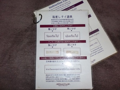 日本語は理解してくれますが個室内には指差し単語帳があり、